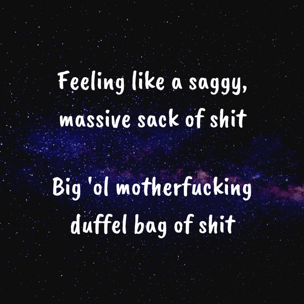 Feeling like a saggy, massive sack of shit (oh shit) /